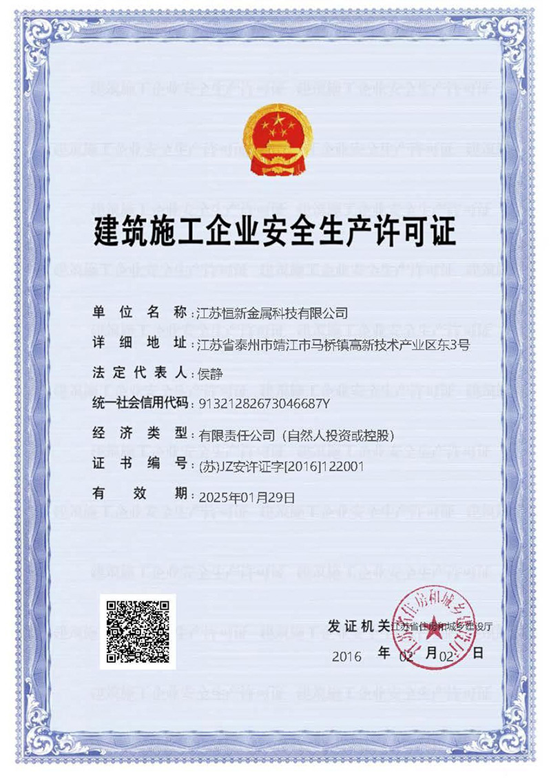 您好!欢迎光临江苏恒新金属科技有限公司,我们竭诚为您服务!